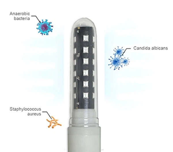 نیلی روشنی کوزنگ کی ملکیت ہے۔ اس روشنی میں antimicrobial اثرات ہوتے ہیں جو اس خطے میں نازک pH توازن پر منفی اثر ڈالے بغیر جلد کی سطح کی تہوں پر اندام نہانی کے بیکٹیریا کو جراثیم سے پاک کر سکتے ہیں۔ بیکٹیریا کو مار کر، اور قدرتی pH کو برقرار رکھتے ہوئے، نیلی روشنی کو detox اور ناپسندیدہ بدبو کو ختم کرنے میں مدد مل سکتی ہے۔